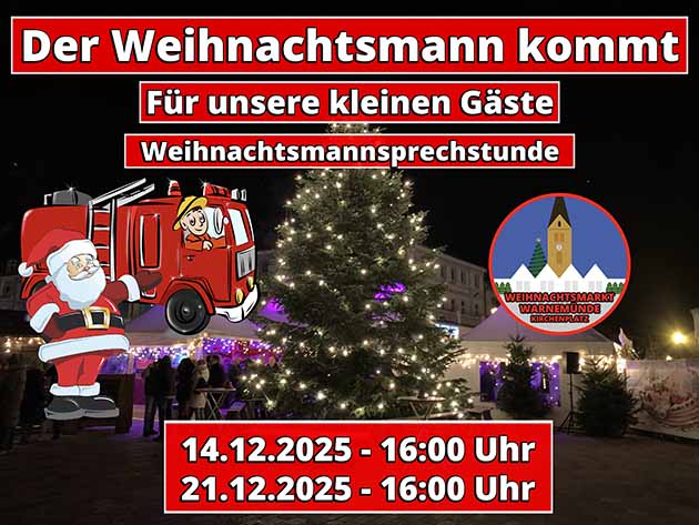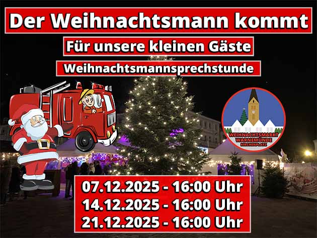 Für unsere kleinen Gäste öffnet der Weihnachtsmann an ausgewählten Adventssonntagen seine ganz persönliche Sprechstunde auf dem Warnemünder Weihnachtsmarkt. 🌟