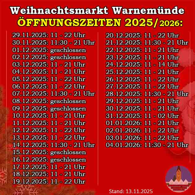 🌟Öffnungszeiten Warnemünder Weihnachtsmarkt 🌟